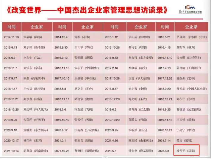 “隱形冠軍樓仲平思享薈”是以我的名字作為背書和命名,傳遞我46年商業(yè)哲學(xué)和實(shí)踐的教學(xué)項(xiàng)目,也是我一生中最重要和最后一項(xiàng)事業(yè)追求,并將成為我唯一親身傳續(xù)的思想載體。我將竭盡所能,萃取出我一生都在踐行的“中國式管理”精髓,毫無保留掏家底分享“雙童”30年經(jīng)營所形成的管理體系,助力更多中小民營企業(yè)成為中國的隱形冠軍!