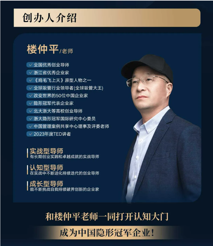 如果你是創(chuàng)業(yè)者、學習者、思想者,希望在經(jīng)營領(lǐng)域有自己的思考和洞察,那么《隱形冠軍樓仲平思享薈》就是為你量身定制,今年最后一期招生,一班只招40位同學,名額所剩不多,抓緊機會哦!