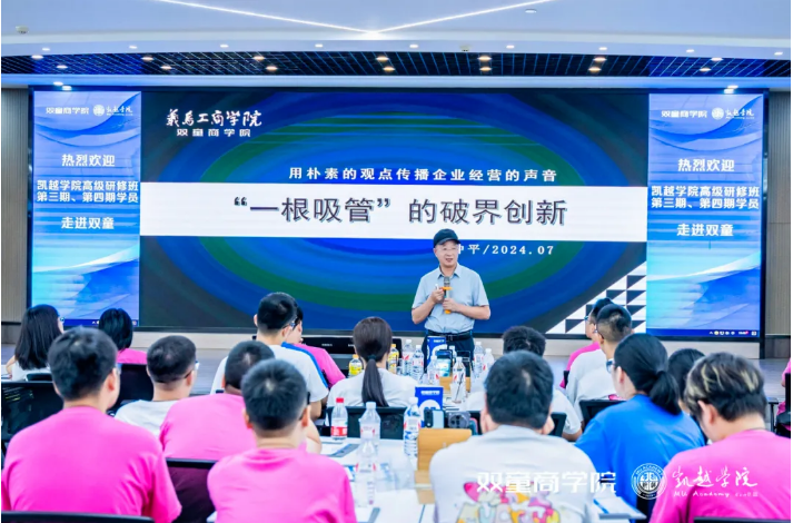期間,凱越學院的學員們深入學習了《“一根吸管”的破界創(chuàng)新》專題課程。該課程由“雙童”企業(yè)的創(chuàng)始人樓仲平親自授課,他詳細闡述了“雙童”如何連續(xù)二十年穩(wěn)居吸管行業(yè)的全球領先地位,并分享了企業(yè)如何通過創(chuàng)新組織機制,有效激發(fā)員工潛能,從而在逆境中實現(xiàn)穩(wěn)健增長!