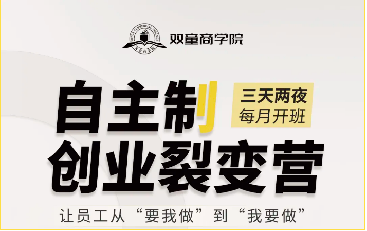 而《自主制創(chuàng)業(yè)裂變營(yíng)》就是依托該機(jī)制,把“雙童”的落地實(shí)操方法與成功經(jīng)驗(yàn)經(jīng)驗(yàn)有機(jī)結(jié)合,不斷打磨、升級(jí)的一套針對(duì)中小微企業(yè)的管理課程。