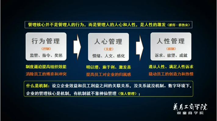 要徹底解決以上問(wèn)題,就必須正確認(rèn)識(shí)管理的本質(zhì):管理不是管人的行為,而是管人心、管人性。從而制定滿足人性的機(jī)制!