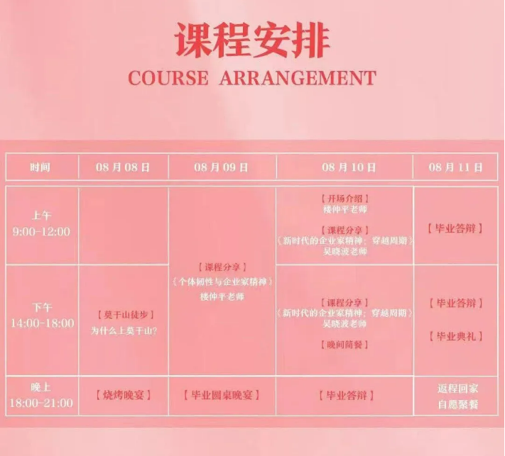 《企業(yè)家精神》作為樓仲平弟子班的收官模塊,將用時4天3晚的時間完成交付!