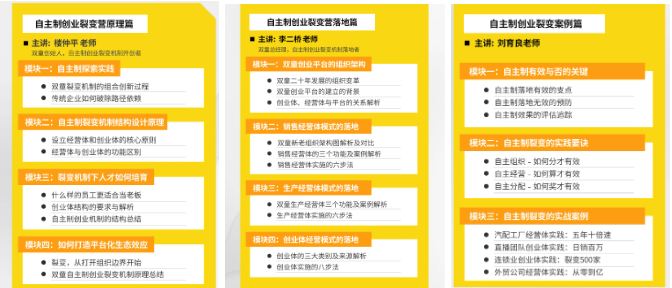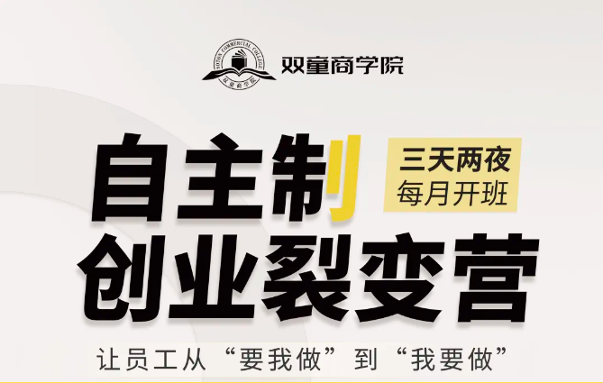 而《自主制創(chuàng)業(yè)裂變營》就是依托該機制,把“雙童”的落地實操方法與成功經(jīng)驗經(jīng)驗有機結(jié)合,不斷打磨、升級的一套針對中小微企業(yè)的管理課程。