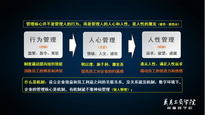 要徹底解決以上問題,就必須正確認(rèn)識管理的本質(zhì):管理不是管人的行為,而是管人心、管人性。從而制定滿足人性的機制!