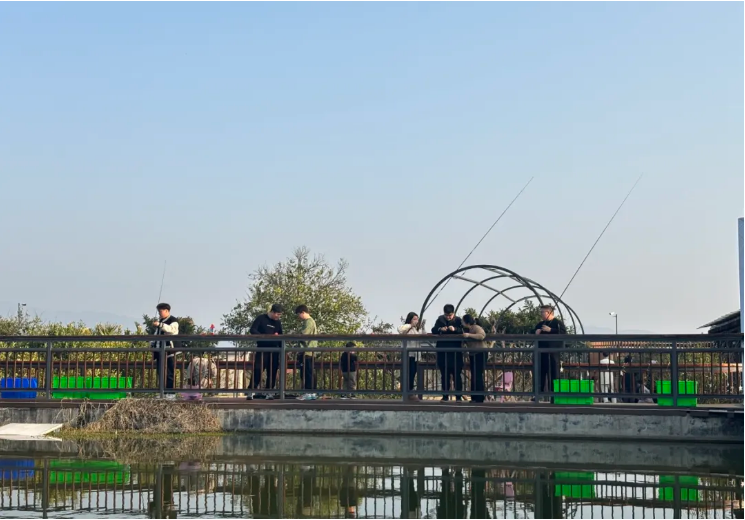 員工們在屋頂花園釣魚,好愜意呀~