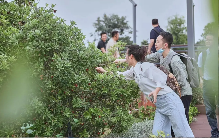 在“雙童”的屋頂花園,種植了二十多品種200多棵果樹,年產(chǎn)近萬斤的水果!光琵琶、桃、梨、李、杏、橘、柚就有120棵,楊梅樹甚至都可以掛果兩千斤,重點(diǎn)是:所有水果全部與員工分享,一個不賣。