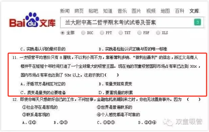 “雙童”案例甚至進入了蘭大附中的高二考題