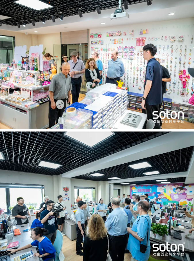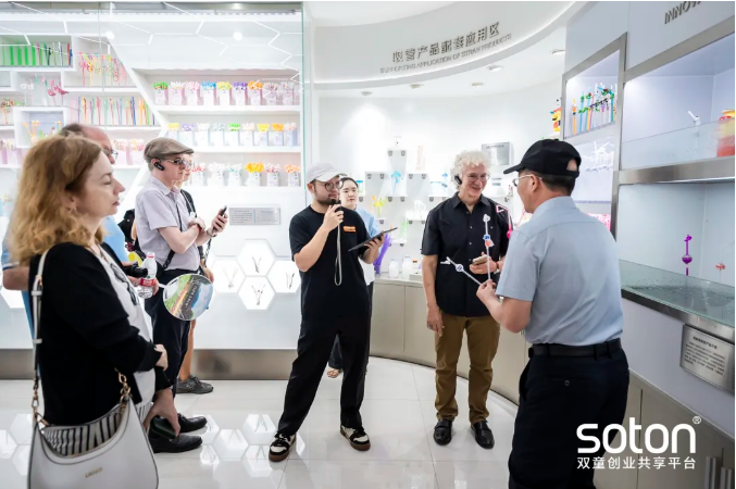 隨后便帶領(lǐng)大家走進(jìn)雙童眾創(chuàng)空間,在第八創(chuàng)業(yè)體和第五創(chuàng)業(yè)體的辦公室,代表團(tuán)看到了與吸管截然不同的產(chǎn)品。