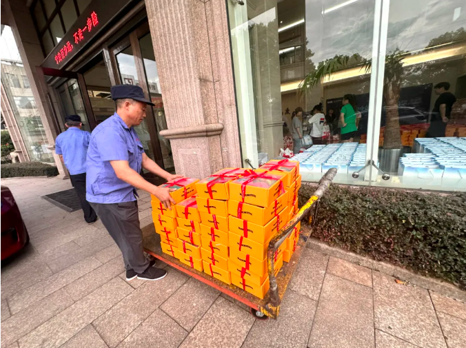 中秋福利準(zhǔn)備好啦!收到領(lǐng)取消息的小伙伴們,立馬拉著推車火速趕來了領(lǐng)取現(xiàn)場,把本部門的福利全領(lǐng)走啦!有美味的月餅,還有30周年紀(jì)念杯!