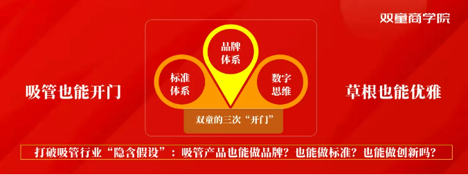 2015年之后,雙童已然成為行業(yè)“天花板”,在形勢一片大好時(shí),他再次選擇“破界創(chuàng)新”,毅然帶領(lǐng)雙童突破“一根吸管”的局限,不斷嘗試摸索,獨(dú)創(chuàng)了一套適合中小企業(yè)的裂變增長的創(chuàng)新模式。