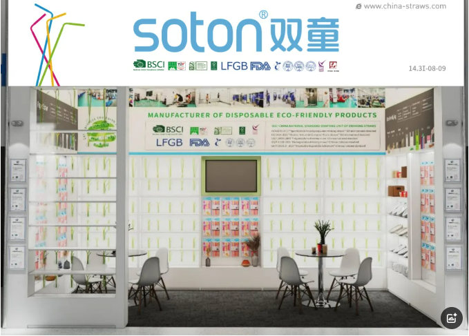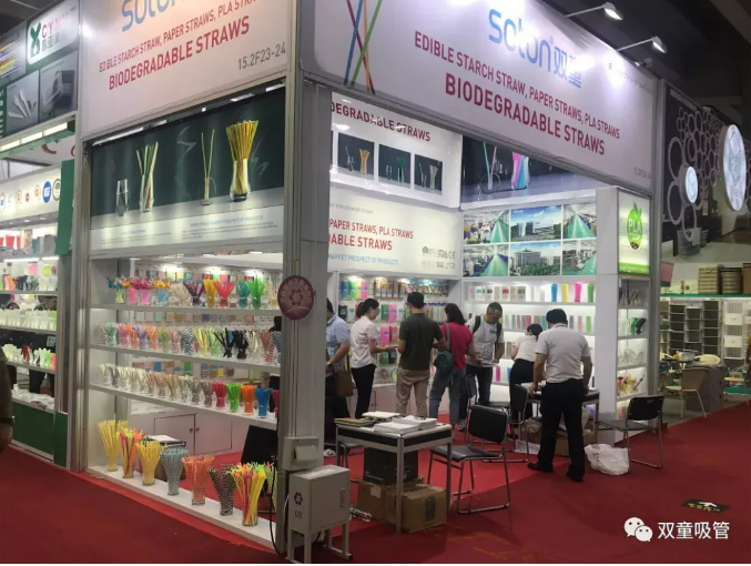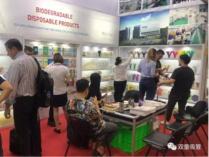 雙童日用品本次參展以推廣可降解產(chǎn)品為主:PLA吸管、紙吸管、可降解膜袋類(lèi)、創(chuàng)新吸管、塑料口杯、PE手套、垃圾袋、塑料吸管、不銹鋼吸管、玻璃吸管、竹子吸管等。