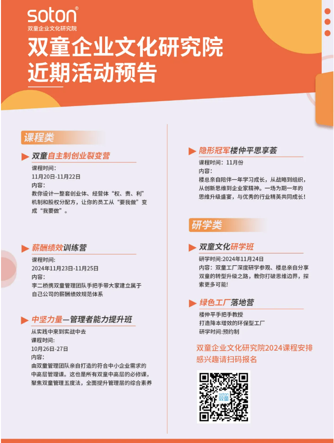 雙童商學(xué)院將通過(guò)本次展會(huì),向更多中小企業(yè)傳播雙童的文化、經(jīng)營(yíng)理念,讓更多人認(rèn)識(shí)這個(gè)實(shí)戰(zhàn)類(lèi)創(chuàng)業(yè)教育培訓(xùn)的商學(xué)院。