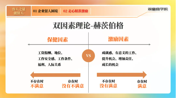 課上,程老師客觀、詳細地分析了中小企業(yè)的留人困境,而管理者有義務(wù)為企業(yè)留住優(yōu)秀人才。所以這就需要企業(yè)管理者掌握一定的專業(yè)技巧來留住員工,除了薪資待遇等保健因素外,管理者可以通過鼓勵、贊美、儀式、欣賞、成長機會和關(guān)注度等來精準激勵員工,減少員工流失率。