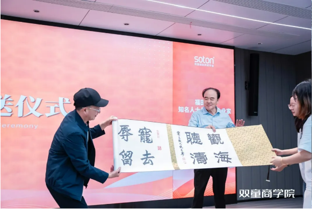 在鄉(xiāng)賢交流中,福田街道與雙童還進行了書法佳作的贈送儀式。