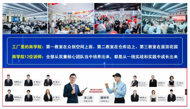 相較于傳統(tǒng)教培行業(yè),雙童商學(xué)院的課程設(shè)計更加注重與實際一線工作的緊密聯(lián)系。它鼓勵學(xué)員親身體驗企業(yè)環(huán)境、深入創(chuàng)業(yè)社群、貼近員工工作日常、并沉浸于實踐操作的每一個環(huán)節(jié)。可以說,雙童商學(xué)院其實是工廠里的商學(xué)院,它開創(chuàng)了中國真正“實戰(zhàn)類”教培的新模式。