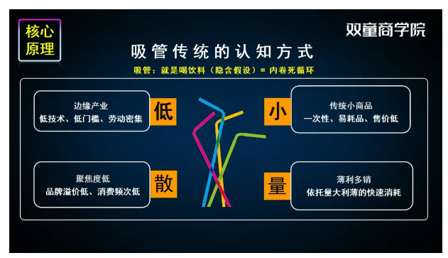 所以在雙童發(fā)展正如日中天時,創(chuàng)始人樓仲平已經(jīng)隱隱意識到雙童已經(jīng)來到了新的極限點。吸管產(chǎn)業(yè)歷經(jīng)幾十年挖掘已達(dá)產(chǎn)業(yè)鏈頂端,創(chuàng)新紅利在衰竭,雙童遇到了行業(yè)“天花板”?!峨p童經(jīng)營哲學(xué)》(2015版)中倡導(dǎo)的“極致專注、工匠精神、一生做好一件事”不可持續(xù)!