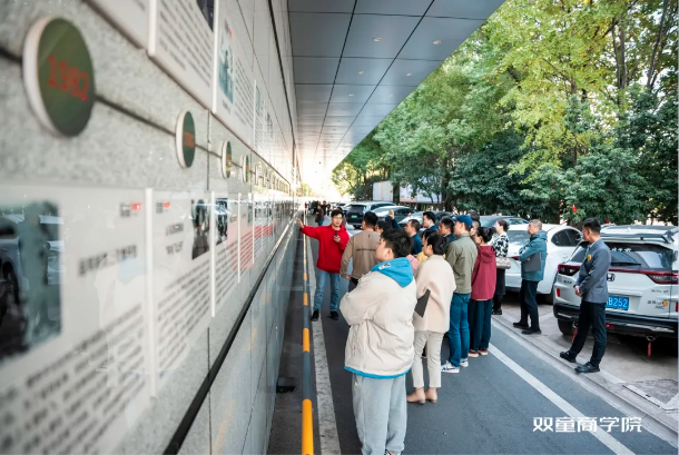 百米文化長廊,用文字與圖片記錄“雙童”不同階段的生長。學(xué)員們從這面墻上可以溯源“雙童”的前世今生;了解義烏市場的風(fēng)云變幻和董事長樓仲平的創(chuàng)業(yè)故事,以及“雙童”成長歷程與經(jīng)營文化、理念等內(nèi)容,情節(jié)跌宕起伏,妙趣橫生。