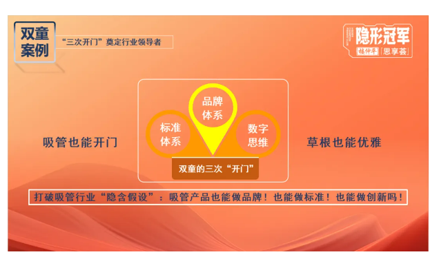 之后樓仲平乘勝追擊,通過(guò)打破“吸管只能用來(lái)喝水”的隱含假設(shè),運(yùn)用創(chuàng)新思維,讓吸管從單一的“喝水”功能向情感化、體驗(yàn)化和娛樂(lè)化延伸,滿足了中小客戶群體的定制化需求,開(kāi)辟了一個(gè)獨(dú)屬于“雙童”的商業(yè)“藍(lán)?!?!
