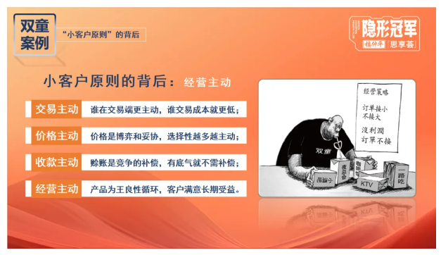企業(yè)最終的目的不僅是活著,而是有品質(zhì)、有尊嚴(yán)、有存在感的活著。因此,樓仲平展開(kāi)了新一輪的“變革”。推行“小客戶原則”,主動(dòng)跳出價(jià)格內(nèi)卷,果斷放棄無(wú)利潤(rùn)的大客戶,轉(zhuǎn)戰(zhàn)高質(zhì)量的中小客戶,重新掌握話語(yǔ)權(quán)。