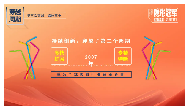 正是這樣持續(xù)的創(chuàng)新,讓“雙童”又穿越了一個(gè)周期,完成了從“多快好省”到“專精特新”的轉(zhuǎn)變,成為吸管行業(yè)當(dāng)之無(wú)愧的“隱形冠軍”!