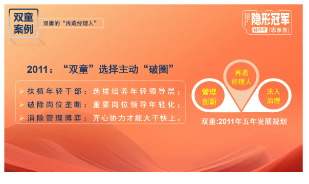這種特質(zhì)在之后也潛移默化地影響了“雙童”這個(gè)企業(yè),以至于能夠在之后的30年乃至未來(lái)更長(zhǎng)的時(shí)間里,屢敗屢戰(zhàn)、屢轉(zhuǎn)屢升,穿越一個(gè)個(gè)難熬的周期。