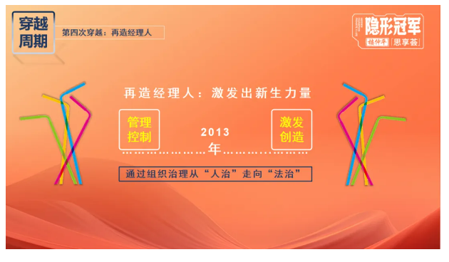 團(tuán)隊(duì)重組后職業(yè)化思維得以建立,自己則去做更重要的事情,從而讓企業(yè)上下致力成長(zhǎng)、協(xié)同共生!也正是在這個(gè)過(guò)程中,他懂得了借力發(fā)揮、運(yùn)用年輕人的力量去帶動(dòng)企業(yè)穿越新的周期!
