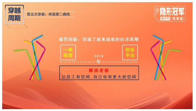 在危機(jī)之下,他毅然帶領(lǐng)“雙童”突破“一根吸管”的局限,突破路徑依賴,打開(kāi)組織邊界,通過(guò)不斷嘗試摸索,獨(dú)創(chuàng)了一套適合中小企業(yè)的裂變?cè)鲩L(zhǎng)的創(chuàng)新模式:將主業(yè)板塊作為創(chuàng)業(yè)共享平臺(tái),拓展“第二曲線”反哺主業(yè)經(jīng)營(yíng)。