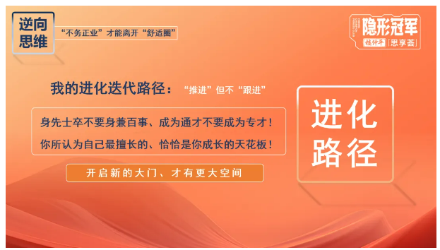而這樣的“不務(wù)正業(yè)”讓他能夠有更大空間,思考新的企業(yè)成長(zhǎng)路徑,推動(dòng)企業(yè)脫離“舒適圈”,讓下屬有更多的發(fā)展空間,并在一次次的挑戰(zhàn)中獲得新的突破和增長(zhǎng)。