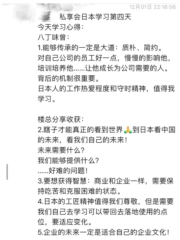 “弟子班”旨在助力學(xué)員成為隱形冠軍,因此在“冠軍之旅”模塊的行程全部根據(jù)學(xué)員們的行業(yè)及需求來(lái)定制,著重學(xué)習(xí)日本的專(zhuān)精特新企業(yè)如何長(zhǎng)存發(fā)展。