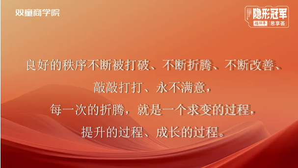 在第三期弟子班第一模塊《認知成長“三部曲”》中(點擊獲取原文),樓老師告訴同學們,所謂成長是“認知成長”,只有不斷打破思維的局限,才能實現(xiàn)認知的升級,認知的升級才能帶領企業(yè)的持續(xù)成長!在雙童有一位充滿傳奇的人,躬耕23年,他一步步完成了“一線操作工—基層管理—中高層管理—平臺總經(jīng)理”的華麗轉(zhuǎn)身,但仔細觀察就會發(fā)現(xiàn),他每一次身份的轉(zhuǎn)變背后都伴隨著一次思維認知的提升,他就是受樓老師影響最深的“大師兄”—李二橋。所以,課研組也特別邀請他為大家?guī)砹恕度绾卧诰蜆I(yè)中創(chuàng)業(yè)》主題分享,在他解讀自己的成長歷程中,同學們可以發(fā)現(xiàn),樓老師在課上教授的知識在一次次的被驗證。接下來,讓我們進入“大師兄”李二橋的故事……