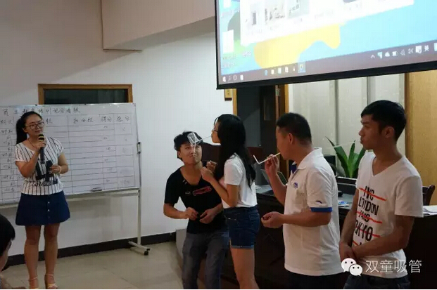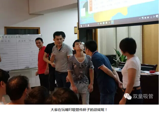 先不講PPT,玩游戲?啥游戲?往下看你就知道啦!現(xiàn)場被分為兩組,大伙用嘴叼著吸管傳杯子。用時最短的是同一車間較為熟悉的團(tuán)隊(duì),他們在游戲前經(jīng)過溝通協(xié)商,可見團(tuán)隊(duì)協(xié)作的重要性呢!