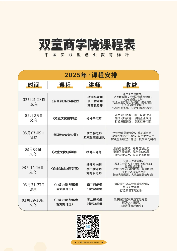 如果你也對“雙童”充滿好奇,也想賦能團隊共同成長,歡迎走進2月25日【雙童文化研學(xué)班】,與上百位優(yōu)秀的創(chuàng)業(yè)者一起學(xué)習(xí)!少量名額,歡迎咨詢鎖定!