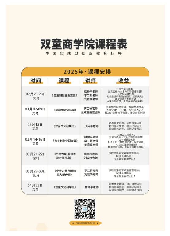為了能夠助力更多中小企業(yè)也能運(yùn)用這套機(jī)制實(shí)現(xiàn)快速增長(zhǎng),雙童商學(xué)院早在2022年,雙童商學(xué)院就針對(duì)該機(jī)制打磨成《自主制創(chuàng)業(yè)裂變營(yíng)》課程,并不斷地升級(jí)迭代,該課程已經(jīng)是一套非常成熟的、可復(fù)制、可實(shí)踐的課程,目前已賦能了2600+學(xué)員企業(yè)成長(zhǎng)!好評(píng)反饋不斷!