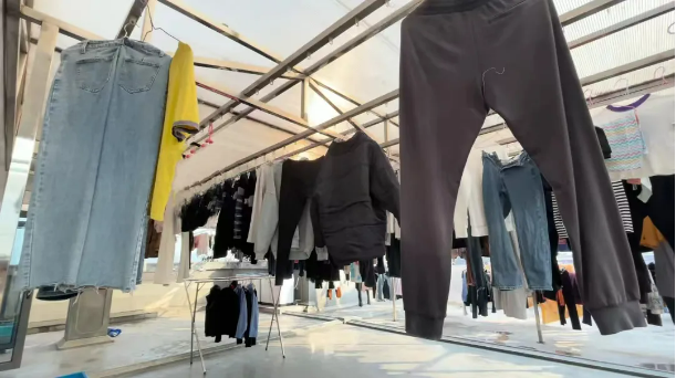 9樓陽(yáng)光板下曬滿(mǎn)了“雙童”員工的日常衣物