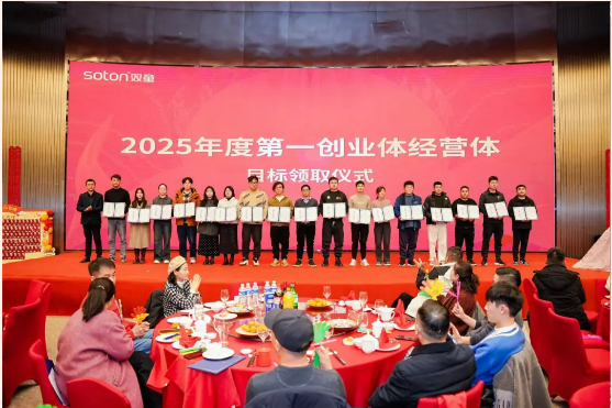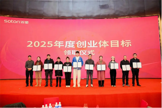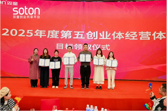 2月18日,雙童創(chuàng)業(yè)共享平臺(tái)2025年會(huì)盛典在義烏雅悅酒店隆重舉行!年會(huì)盛典上,40多位“小老板”共同登臺(tái)領(lǐng)取2025年度目標(biāo)責(zé)任書(shū),笑容滿面,意氣風(fēng)發(fā)!