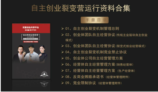 3、交付自主創(chuàng)業(yè)裂變模式的各項(xiàng)規(guī)則、文本、合同等書面資料