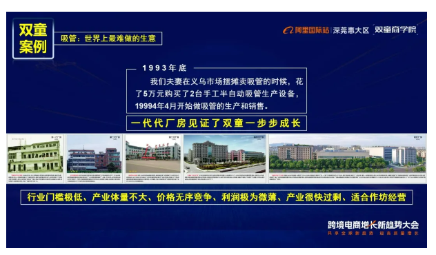 此后七年,雙童創(chuàng)業(yè)平臺成功孵化出了16家創(chuàng)業(yè)體和26個經(jīng)營體!形成了以吸管制造業(yè)為基礎,以國際貿(mào)易和創(chuàng)業(yè)教育兩大板塊為融合的新型產(chǎn)業(yè)模式,完成了從“一根吸管”到“創(chuàng)業(yè)平臺”的轉變!