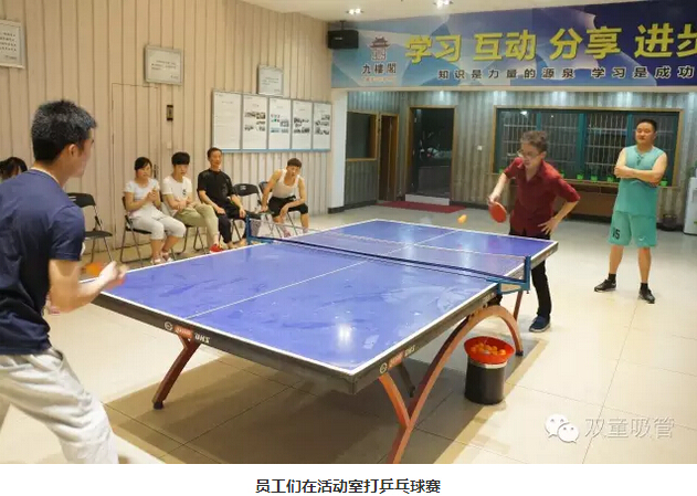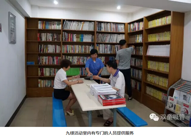 來到九樓的員工活動室,電視、電腦、乒乓球桌等設施一應俱全。下班后,員工們可以打乒乓球,唱卡拉OK,看電影;還可以在圖書室看書,在機房上網(wǎng)。我們還設立了服務臺,有一名服務人員為員工們進行服務。