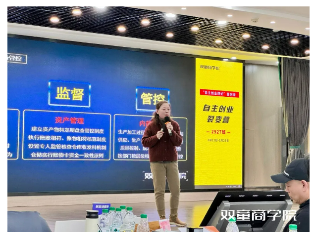 如何在裂變機制落地過程中有效平衡公司平臺和各創(chuàng)業(yè)體之間的財務(wù)管理問題,是很多學員非常重視的。為此,雙童商學院還特別邀請了雙童創(chuàng)業(yè)共享平臺財務(wù)總監(jiān)蔣秀芳來到課堂現(xiàn)場,為大家分享雙童的操作管理經(jīng)驗。