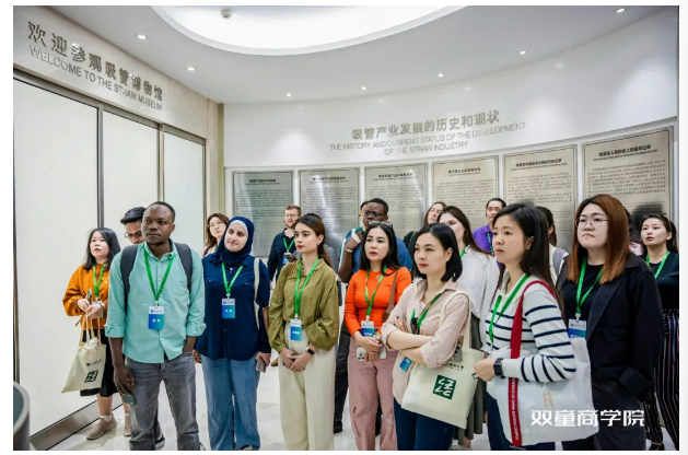 在中國吸管博物館,新漢學(xué)博士學(xué)術(shù)研習(xí)團(tuán)在講解員的引領(lǐng)下,深入了解了小小吸管背后的產(chǎn)業(yè)發(fā)展變遷,以及雙童是如何推動吸管產(chǎn)業(yè)綠色發(fā)展的。