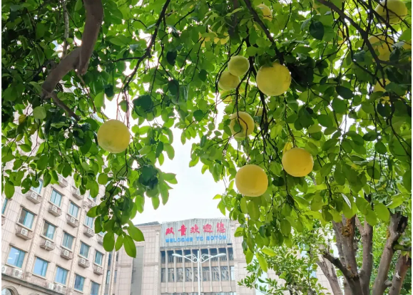 另外一種柚子樹,則是為了滿足員工的口腹之欲的了,這種主要集中在雙童的空中花園里。可食用的柚子種類就多了,比如本地的胡柚,掛果率超高,還有鮮甜多汁的葡萄柚、紅美人等等。