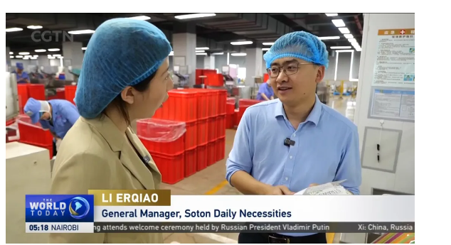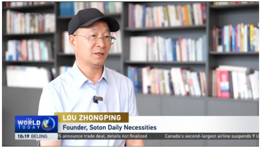 央視CGTN記者也走進(jìn)雙童,實(shí)地采訪董事長樓仲平和總經(jīng)理李二橋。巧合的是,采訪當(dāng)天,雙童的美國訂單正在重啟生產(chǎn)發(fā)貨計(jì)劃。