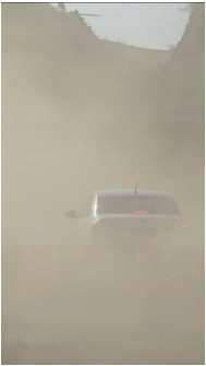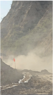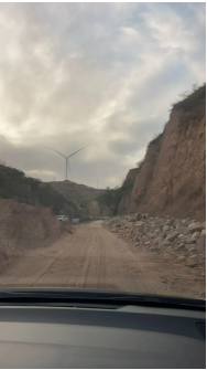 因?yàn)樾旭偟?/span>道路開始從柏油路變成坎坷泥濘的土路,一路上顛簸崎嶇不說,中間有一段路程,更是黃沙漫天、塵土飛揚(yáng),能見度幾乎為“0”!車轍印剛壓出半尺深,轉(zhuǎn)眼就被山風(fēng)卷著砂石填平,如果此時下車步行的話,估計沒走幾步路,“膝蓋骨里都得灌進(jìn)二兩黃土”來!