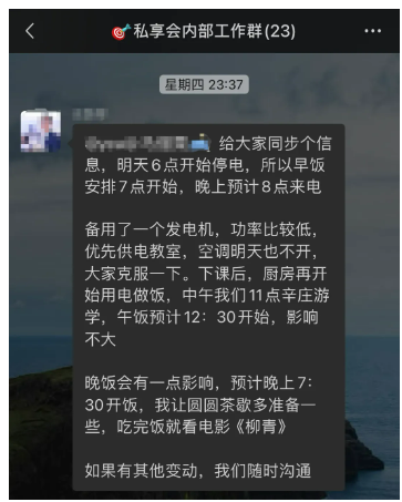 15日晚,結(jié)束了第一天課程學(xué)習(xí)后,課研組突然接到了因?yàn)樾蘼穼?dǎo)致全村次日全天停電的通知。很顯然,這是一個非常棘手的突發(fā)狀況。