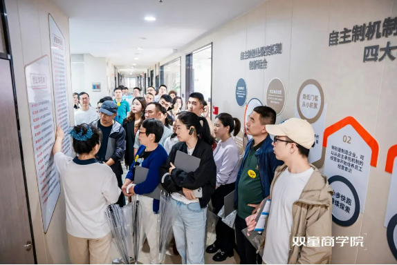 在游學(xué)過(guò)程中,講解員還會(huì)邀請(qǐng)到創(chuàng)業(yè)體總經(jīng)理為大家一一介紹“雙童”自主創(chuàng)業(yè)裂變機(jī)制具體落地方式、以及各經(jīng)營(yíng)體是如何劃分、創(chuàng)業(yè)體是如何裂變出來(lái)、二者與母體公司的關(guān)系及選拔機(jī)制。