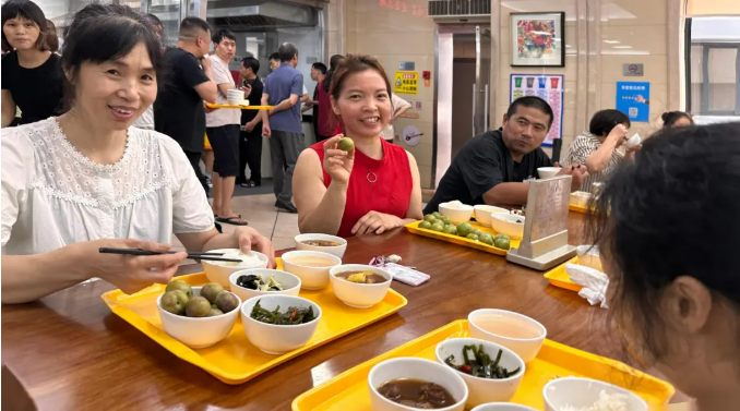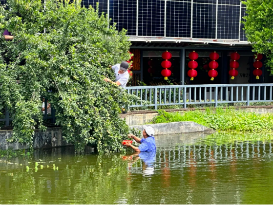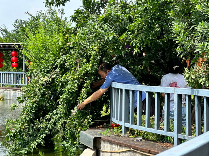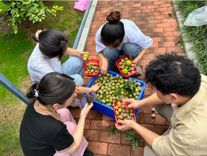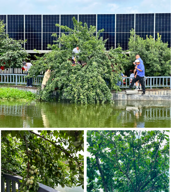 在采摘的過程中,發(fā)現(xiàn)一棵李子樹臨水生長,很多大果、紅果都在池塘那邊。見此,大家都犯了難,猶豫要不要放棄這棵樹上的果實(shí)。突然,一聲“讓我來”奪去了大家的注意力,一位員工自告奮勇,他嘿嘿一笑,說“這里水又不深,我下去一趟就是了。這么好的果子,不摘不就浪費(fèi)掉了?”轉(zhuǎn)即,他拿來了下水的膠褲和膠鞋,扶著欄桿,小心地下了水,麻溜地摘了起來。不多時(shí),李子又摘了一籮筐,他高興地舉起籃子,臉上洋溢著興奮的笑容。生態(tài)園里此起彼伏的歡呼聲化作豐收的樂章。不少員工捧著剛摘的“糖心李”現(xiàn)場開吃:“真的好甜,小的李子比大的還有味道呢!”有些員工干脆現(xiàn)采現(xiàn)吃,和大家邊吃邊嘮嗑:“這可比超市買的香多了,又無污染無公害的!”