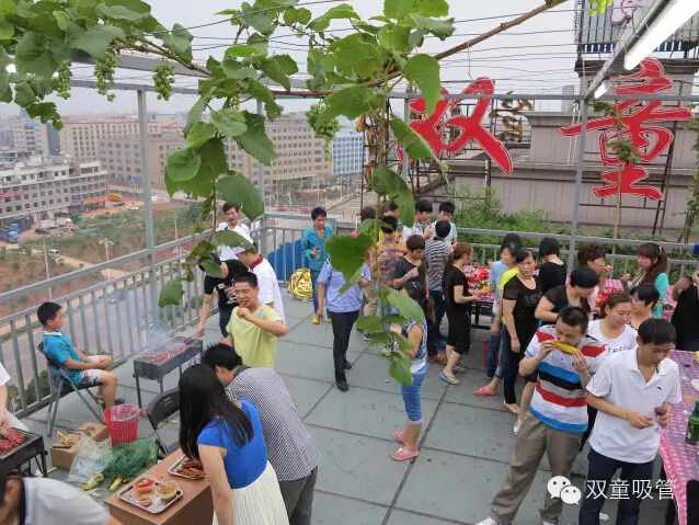 6、大夏天的晚上,九樓樓頂涼風(fēng)習(xí)習(xí),辦一個(gè)屋頂燒烤生日會(huì),讓大家自己動(dòng)手,體驗(yàn)一下燒烤的樂(lè)趣!當(dāng)夜晚降臨,音樂(lè)響起,我們隨著音樂(lè)邊燒烤邊聊天,吃點(diǎn)水果唱著歌。當(dāng)家人樓總親自為我們切蛋糕唱生日歌,壽星們本著“生日我最大”的原則,硬是把當(dāng)家人扮成了一只大花貓……