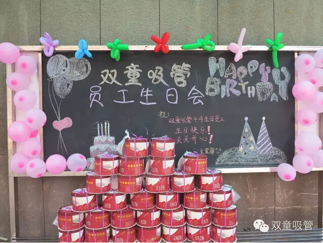 “雙童”的員工們都知道,我們每個(gè)月都會(huì)為當(dāng)月過(guò)生日的壽星員工舉辦集體員工生日會(huì),為壽星們帶去生日的祝福和家的溫暖。雖說(shuō)生日總免不了要有蛋糕、面條、祝福,但在我們“雙童”,就算是每個(gè)月一次的生日會(huì),后勤和文宣人員也會(huì)絞盡腦汁,想出不一樣的生日會(huì)舉辦方式,讓每一位壽星都有一份難忘的回憶哦!有圖有真相,下面吸管妞就帶大家來(lái)看看我們豐富多彩的生日會(huì)!