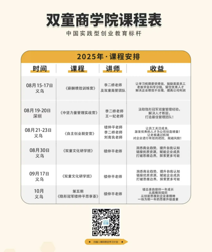 如果你也對“雙童”充滿好奇,也想賦能團隊共同成長,歡迎走進8月30日【雙童文化研學(xué)班】,與上百位優(yōu)秀的創(chuàng)業(yè)者一起學(xué)習(xí)!少量名額,歡迎咨詢鎖定!