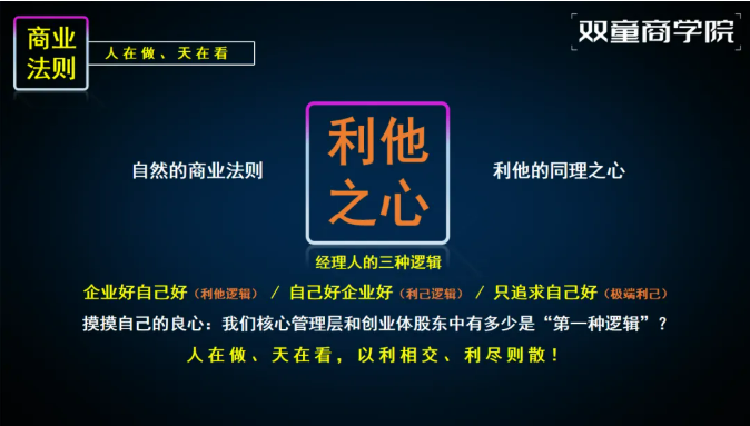 稻盛哲學(xué)認(rèn)為,利他心與個(gè)人利益并非對(duì)立,而是相輔相成的“自利則生,利他則久”。我們要理解 “所謂人,何為正確”的用人基準(zhǔn),是判斷一切行為的根本基準(zhǔn),也就是“作為人,應(yīng)該正直、善良、守信、勤奮”,面對(duì)抉擇時(shí)捫心自問(wèn):是否利他?是否誠(chéng)實(shí)?是否違背良心?是否以良知為羅盤?